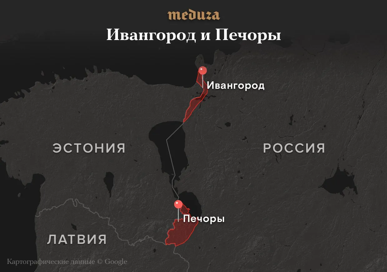 По Конституции Эстонии, ее сухопутная государственная граница проходит таким образом, что в состав страны входит часть территорий нынешних Ленинградской и Псковской областей России. 122-я статья основного закона Эстонии ссылается на Тартуский мирный договор, заключенный с РСФСР в 1920 году. После вхождения Эстонии в состав СССР ее территория сократилась: к 1957 году республика потеряла Ивангород и Печоры.